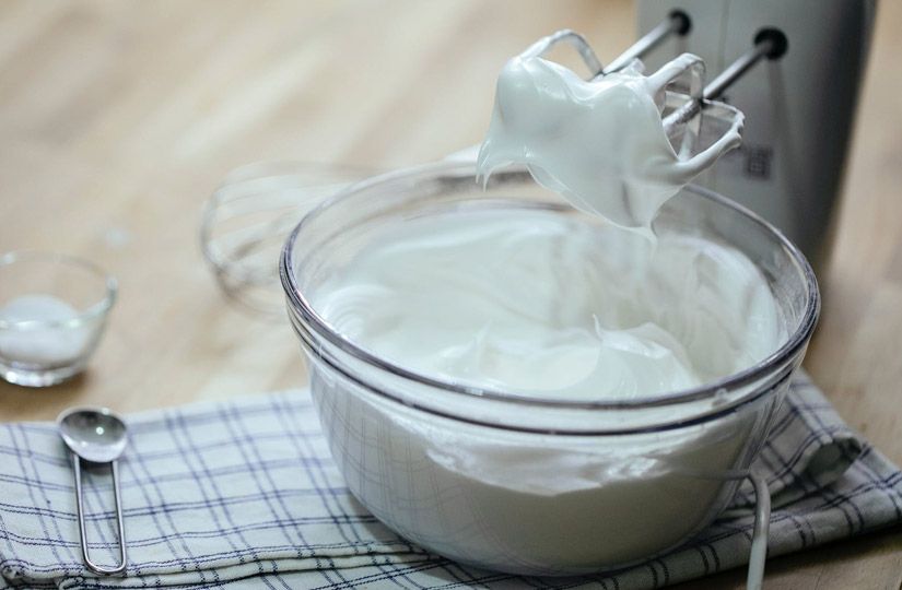 Следующий этап – взбивание пюре с белком и приготовление сиропа. В идеале эти два процесса должны происходить одновременно, однако если у вас нет планетарного миксера и большого опыта в приготовлении зефира, то сначала взбейте пюре, а затем приступайте к варке сиропа.