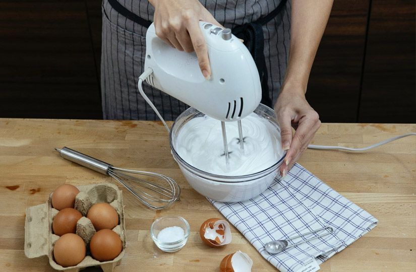 Итак, возьмите чистую и сухую глубокую миску (зефирная масса дважды увеличивается в размерах в процессе готовки), выложите в нее охлажденное яблочное пюре, добавьте к нему холодный яичный белок (следите, чтобы в него не попали частички скорлупы и капли желтка) и начните взбивать массу на высоких скоростях. У планетарного миксера взбивание пюре до правильной консистенции займет около пяти минут, ручным же придется провозиться подольше, около десяти минут.