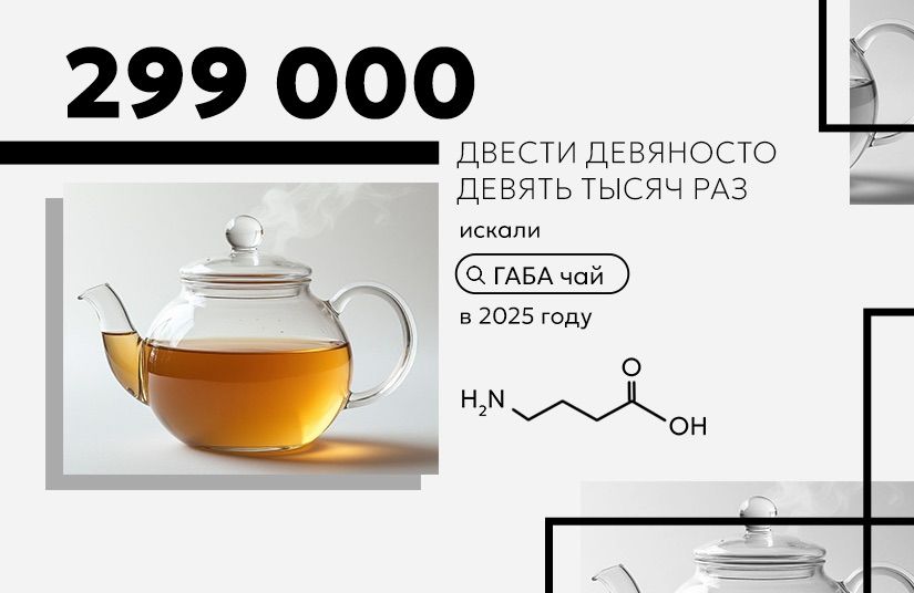 ГАБА — чай с повышенным содержанием гамма-аминомасляной кислоты. Он в трендах уже несколько лет, но в 2025 году его искали в два раза чаще по сравнению с предыдущим. Причина такого успеха — соцсети. Благодаря слухам о позитивном влиянии на нервную систему, ГАБА в качестве натурального антидепрессанта и аналога БАД регулярно попадает в подборки блогеров-нутрициологов, зожников, коучей, психологов. ГАБА почти сравнялась в цифрах с трендом прошлых лет — матчей (305 643 запроса за год).