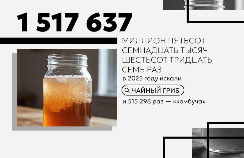 1 050 169 раз фигурировал в поиске запрос «улун», а «белый чай» запрашивали в два раза реже. Однако разновидности китайского чая с большим перевесом опередил чайный гриб — тот самый, из трехлитровой банки на кухне. На волне популярности ЗОЖ напиток, наравне с другими ферментированными продуктами, стал трендовым и обзавелся более звучным названием — комбуча.