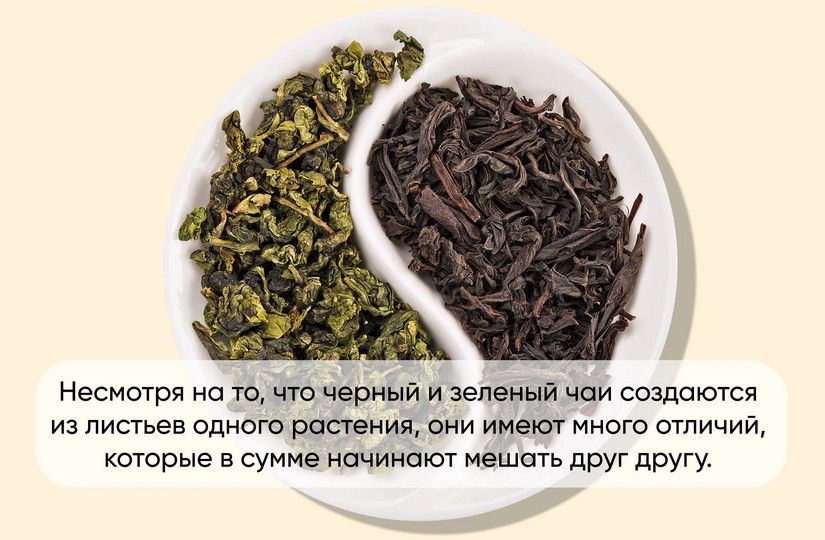 Несмотря на то, что черный и зеленый чаи создаются из листьев одного растения, они имеют много отличий, которые в сумме начинают мешать друг другу.
