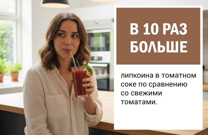 Главная звезда любого вида томатного сока — ликопин. Этот антиоксидант отвечает за красный цвет овоща и защиту клеток человека от старения. В комплекте с ним идут клетчатка, витамин С, калий, фолиевая кислота, бета-каротин и глутаминовая кислота.