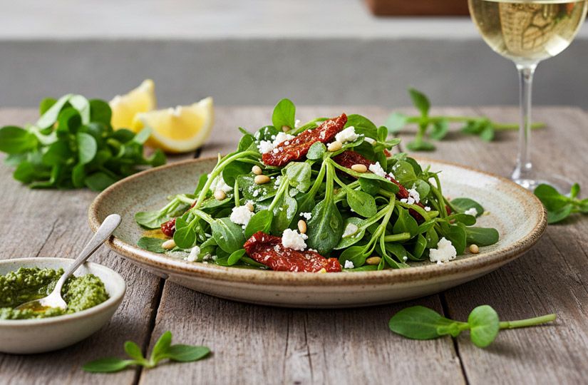 С портулаком можно приготовить и альтернативный песто: замените базилик на портулак, а вместо кедровых орешков (чтобы эксперимент был полноценным) используйте миндаль или грецкий орех.