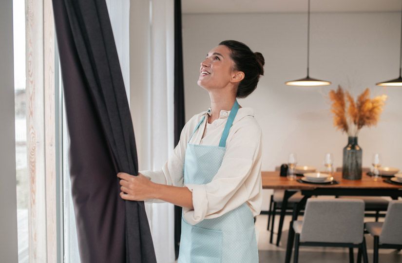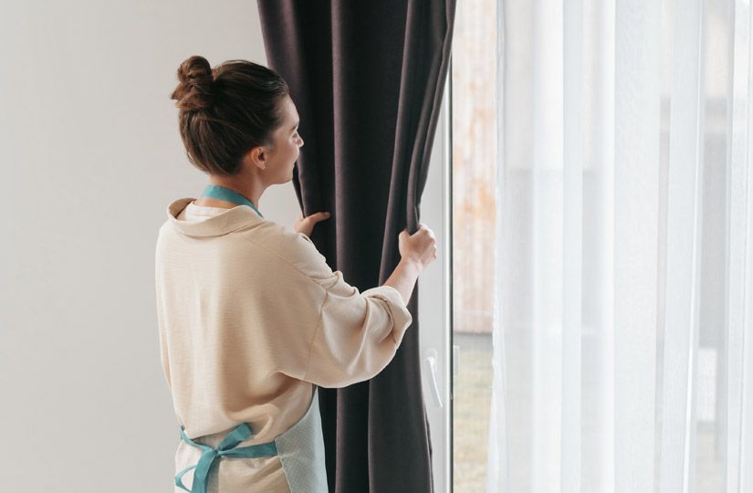 - Встряхните портьеры (лучше открыть окно и сделать это на свежем воздухе).