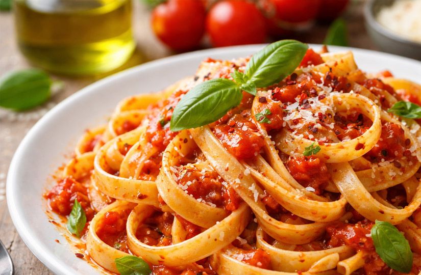 - Спагетти «Болоньезе» + зеленый салат.