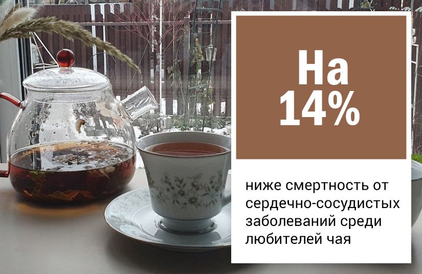 В 2024 году корейские ученые изучили данные почти двух миллионов человек. Объединив результаты 38 крупных исследований, они предположили, что привычка пить чай может быть связана с продолжительностью жизни. Те, кто выпивали около двух чашек в день, реже умирали от болезней сердца [4].