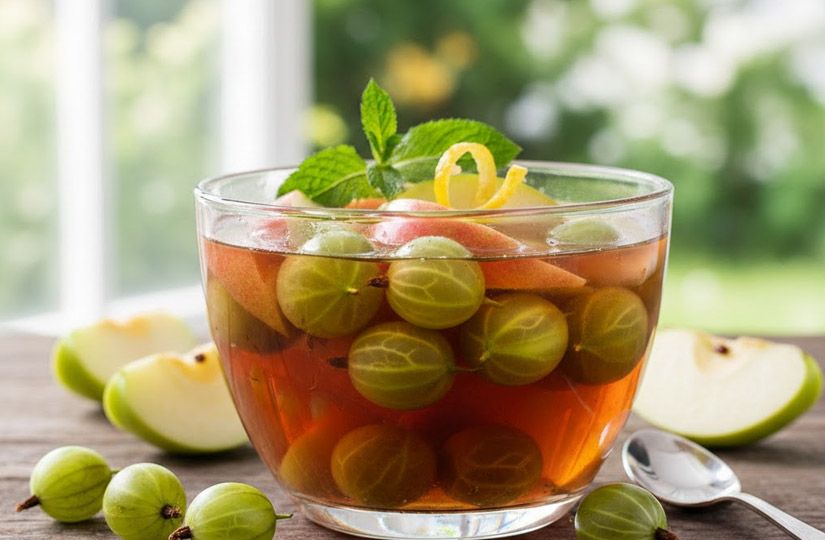 Этот летний напиток можно приготовить всего за 15 минут. Сочетание кислинки крыжовника, сладости бузины и свежести тимьяна создает необычный букет вкусов.