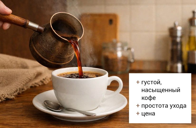 В турке эспрессо не приготовить, но сварить крепкий и насыщенный кофе можно без проблем. Уход за ней сравним с уходом за обычной чашкой, однако следить за магией надо зорко: стоит отвлечься, и мыть нужно будет не только турку, но и плиту.