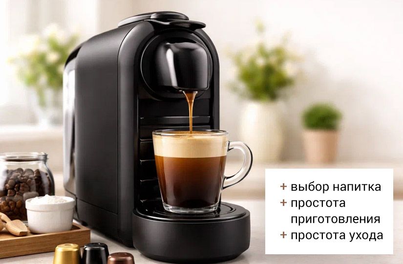 Капсульная кофемашина стоит дешевле «автомата», проста в уходе, работает тише и готовит почти все напитки на основе эспрессо (в случае системы «Дольче Густо»). Правда, с учетом стоимости капсул сэкономить с ней тоже не выйдет, а порция напитка небольшая.