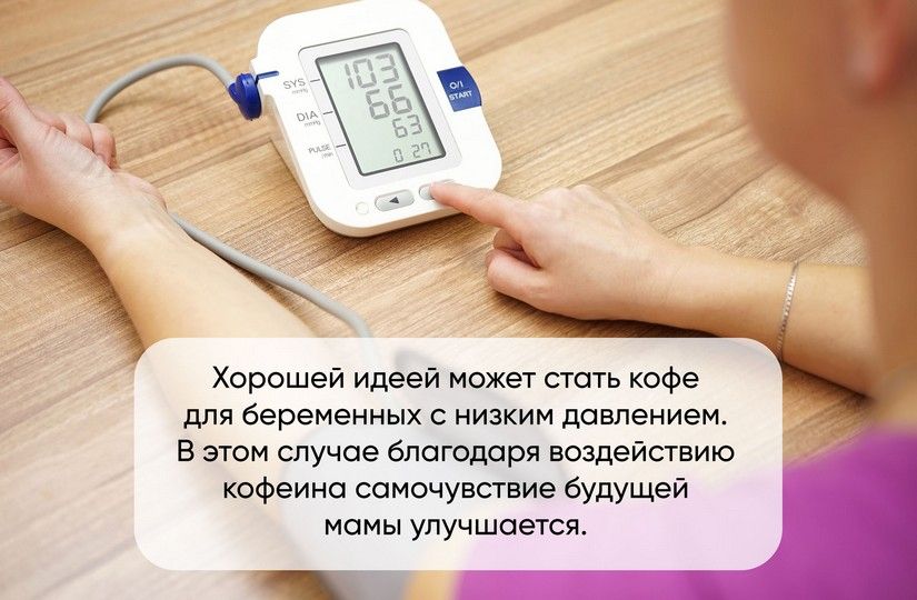 У кофе есть множество приятных и полезных эффектов, которые никуда не исчезают, когда его пьет беременная женщина. Так, например, хорошей идеей может стать кофе для беременных с низким давлением. Благодаря воздействию кофеина давление поднимается и самочувствие будущей мамы улучшается.