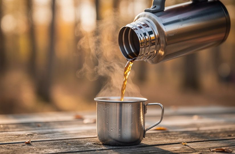 Также многие опытные путешественники советуют брать с собой в термосе обычный кипяток и уже на его основе готовить любой напиток на один раз – наливаете воду в отдельную термокружку и добавляя в нее пакетик с чаем, порционные сливки или сахар по желанию.