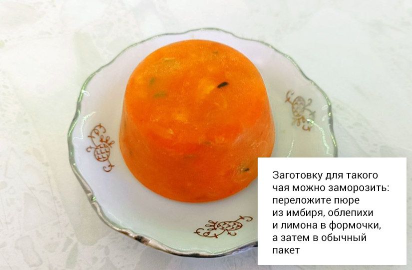 100 г облепихи содержат почти три дневные нормы витамина С (200 мг), а имбирь помогает организму противостоять простуде.