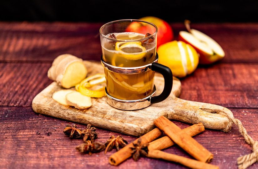 Ингредиенты: палочка/чайная ложка корицы (настоящей или кассии), имбирь (две столовые ложки тертого или одна столовая ложка молотого), литр воды, мед или сахар по вкусу. По желанию можно снова добавить лимон — достаточно одного кружка.