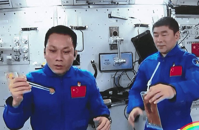 Китайские астронавты пьют чай палочками. Фото: min.news