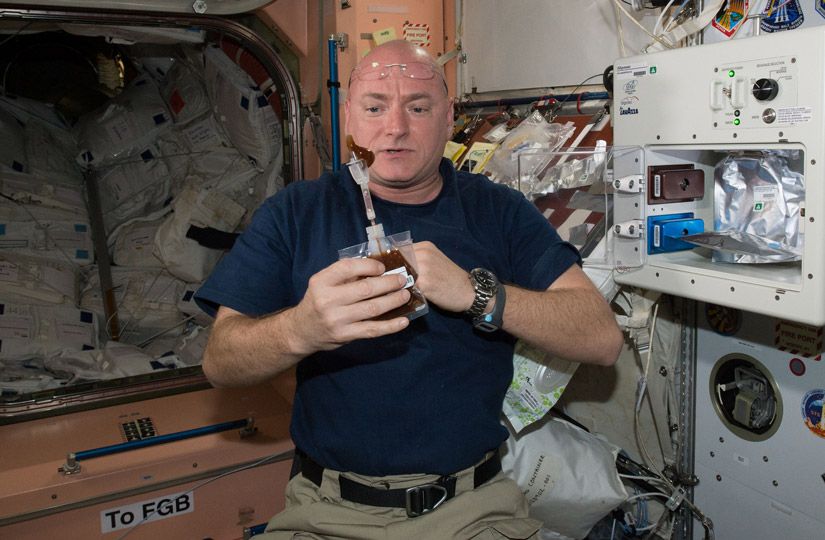 Астронавт НАСА Скотт Келли наслаждается своим первым напитком из новой кофемашины ISSpresso. Устройство эспрессо позволяет экипажам готовить чай, кофе, бульон или другие горячие напитки. Фото: nasa.gov