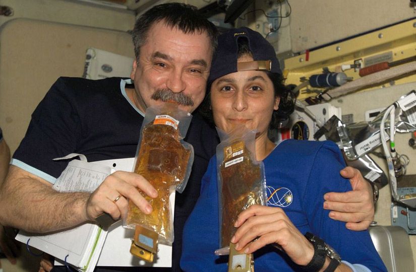 Космонавт Михаил Тюрин (слева) и астронавт Сунита Уильямс пьют чай. Фото: nasa.gov