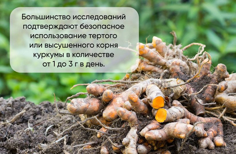 - Не существует конкретного рекомендуемого ежедневного потребления куркумина. Суточная доза зависит от состояния здоровья. Большинство исследований подтверждают безопасное использование от 1 до 3 г тертого или высушенного корня куркумы в день.