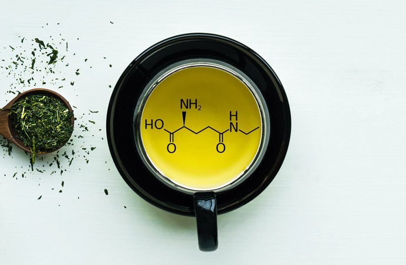 L-теанин, который обычно называют просто теанином, впервые извлекли из листьев японского зеленого чая гёкуро в середине ХХ века. Позже его обнаружили в черном и белом видах чая, а также в некоторых грибах. Ученые обнаружили, что эта ботаническая аминокислота схожа по структуре с глутаматом — нейромедиатором, ответственным за память, передачу информации и моторику. Учитывая это, они сделали вывод о схожести их свойств.