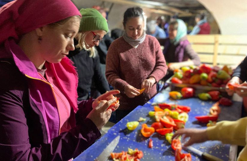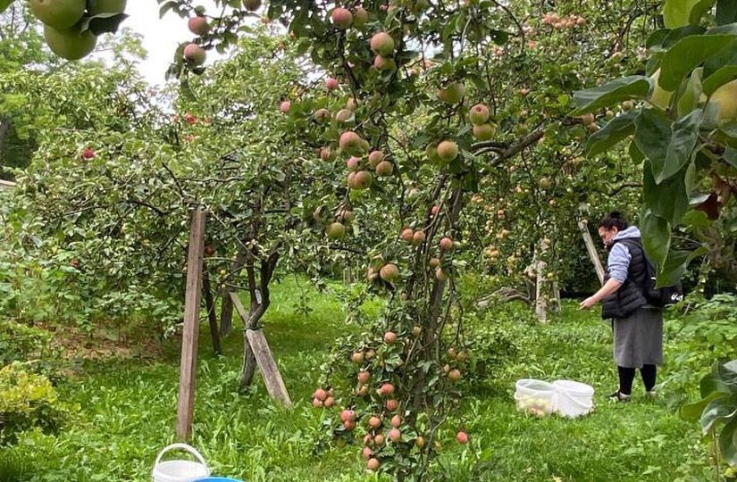 Весной волонтеры высаживают картошку и лук, высевают морковь и зелень на монастырских огородах. Летом ухаживают за грядками — пропалывают сорняки и поливают посадки. На сенокосе работают вместе с техникой: машина скашивает траву, волонтеры граблями сгребают ее в копны и грузят на телеги. Осенью наступает самая приятная пора — сбор урожая и заготовки: варят душистое варенье, сушат яблоки и ягоды впрок.
