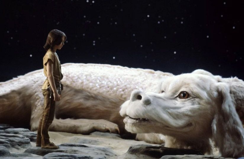 Приключенческий фильм о том, как воображение мальчика спасает умирающую фантастическую страну. Яркий персонаж фильма — бескрылый белый дракон удачи Фалькор, напоминающий собаку. Благородное, мудрое и невероятно оптимистичное существо дарит радость и поддерживает тех, кто потерял надежду. Одна из самых известных фраз дракона: «Никогда не сдавайся, и удача найдет тебя».